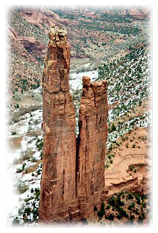 As children growing up at Spider Rock, Canyon De Chelly and Canyon Del Muerto, our grandmother would tell us of mischievous and disobedient children that were taken to Spider Woman and woven up in her tight weaving, after Talking God had spoken through the wind spirits to instruct Spider Woman on how to find and identify the bad little kids. Spider Woman would boil and eat the bad little kids, that is why there are white banded streaks at the top of Spider Rock, where the bones of the bad children still bleach the rocks to this day.